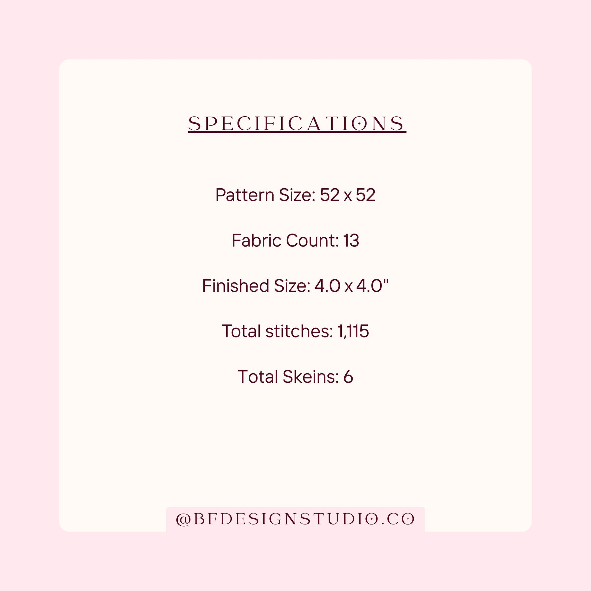 - Canvas Size: 4” x 4” on 13 mesh canvas.