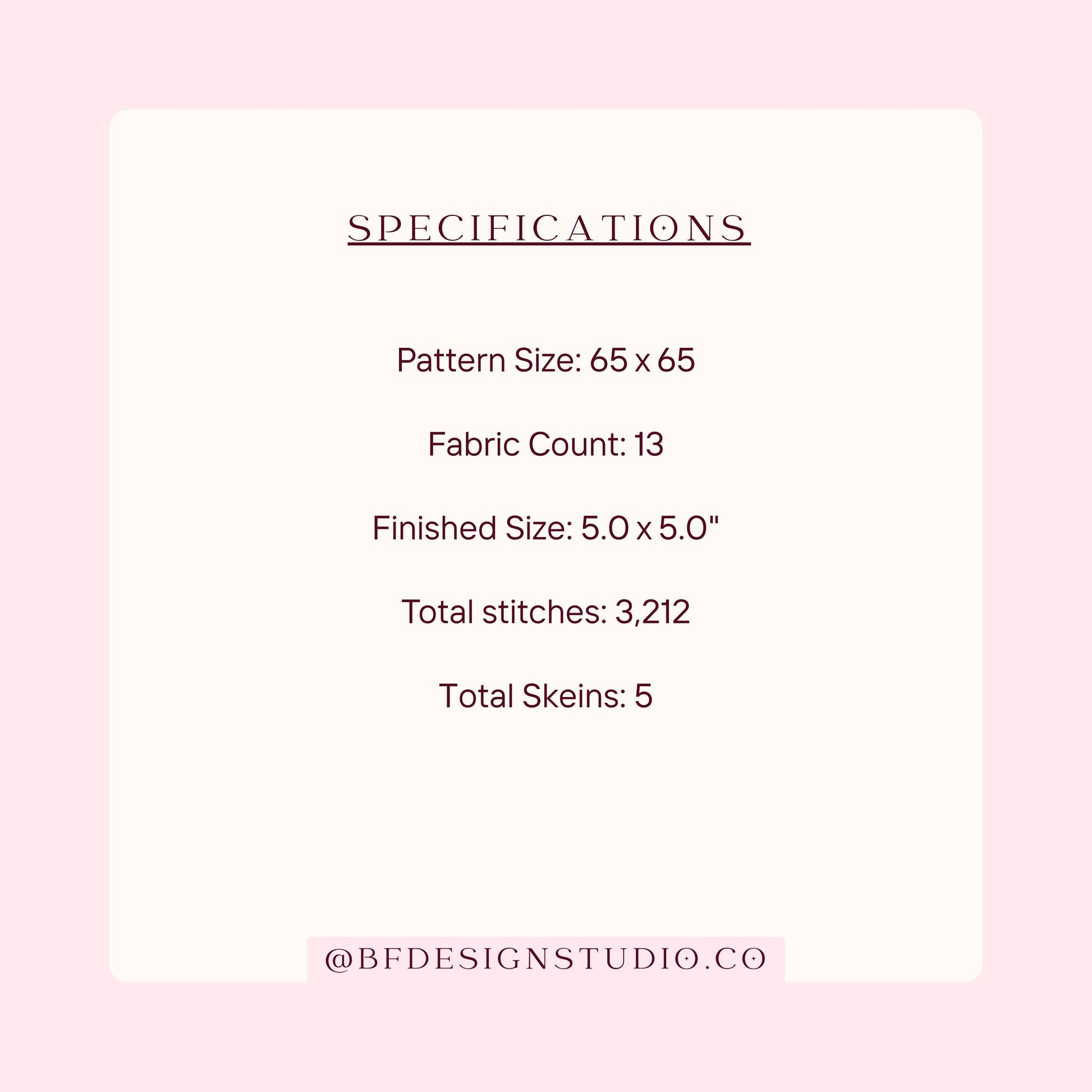 - Canvas Size: 5” x 5” on 13 mesh canvas.