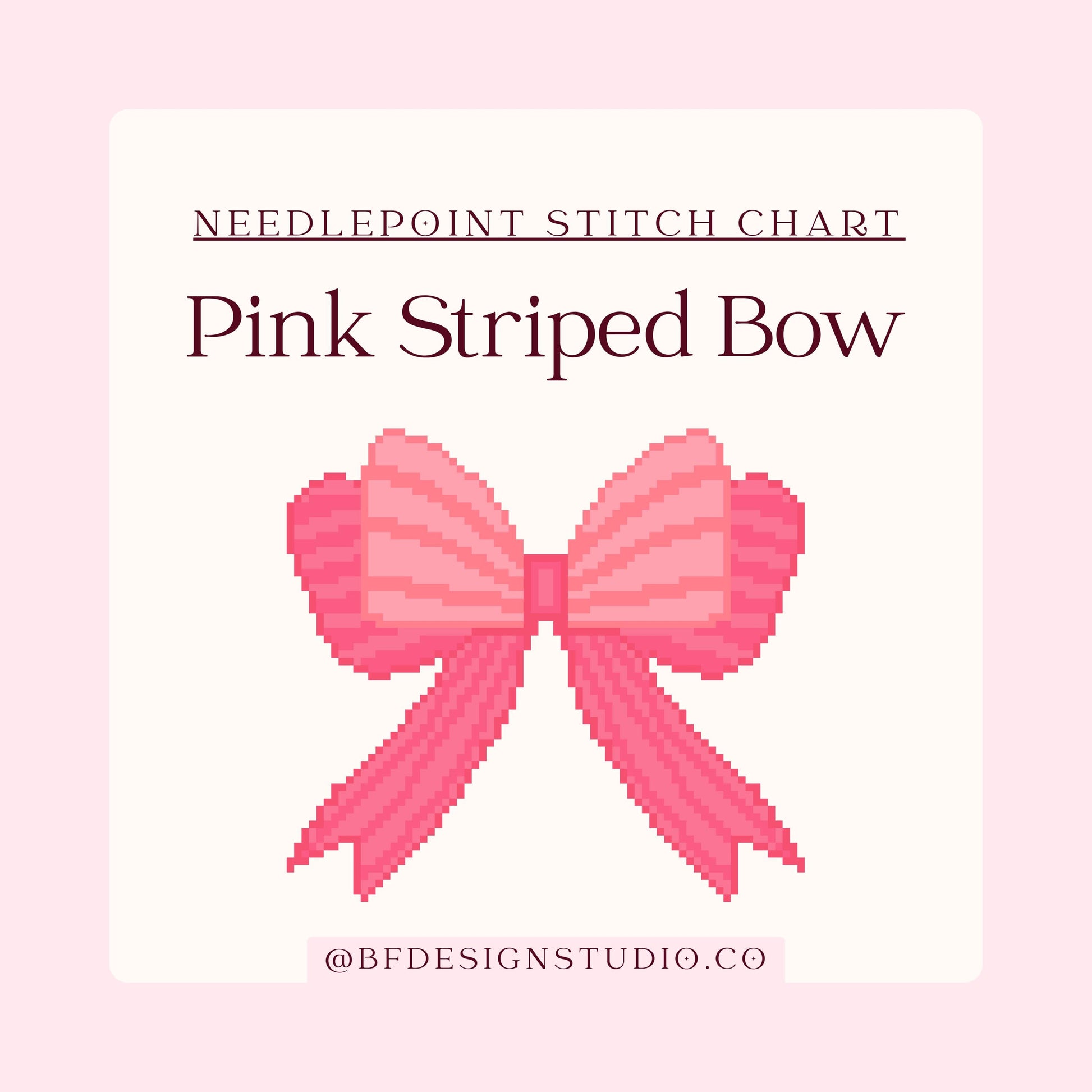 Pink Striped Bow - Needlepoint Chart - 18 Mesh - 4" x 4" - Instant Digital Download